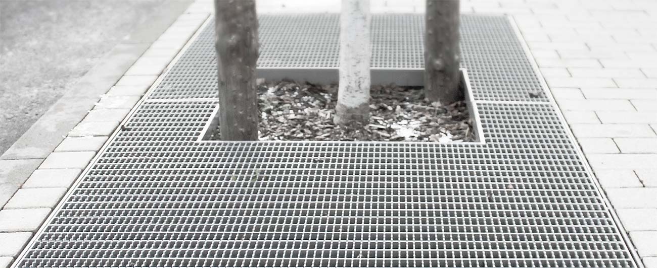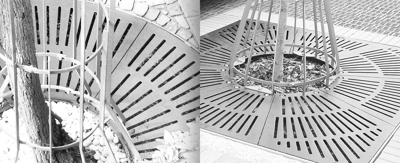 Gusseiserner K60-Mammut-Baumrost im Radial-Design.