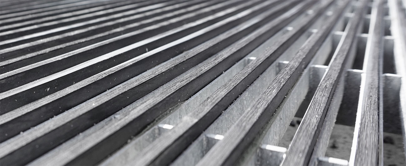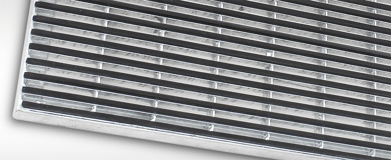 Widerstandsfähige Gummiprofilroste für Eingänge.