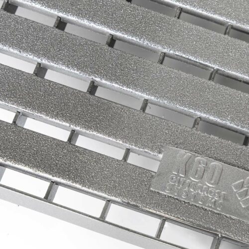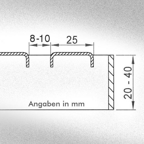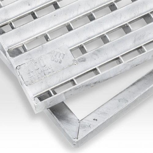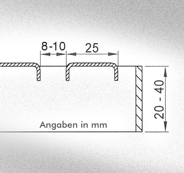 Die Profilabstände betragen ca. 8 mm, die Endmaschen werden ausgemittelt. Sollten Sie unsere Barfußroste auch als Stufe benötigen, so ist dies ebenfalls möglich.