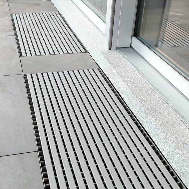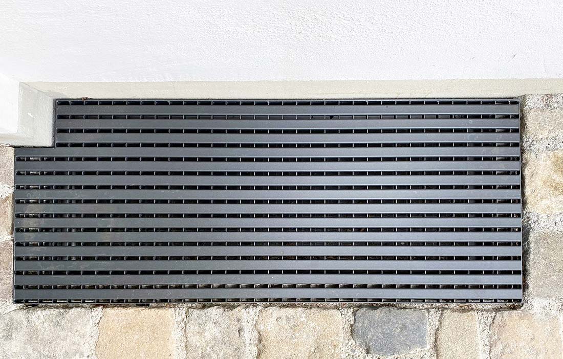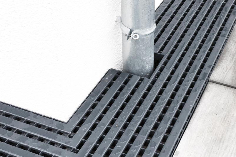 - Barfußrost mit Pulverbeschichtung und Fallrohrausschnitt