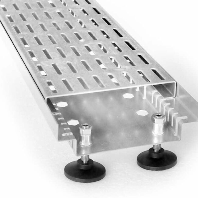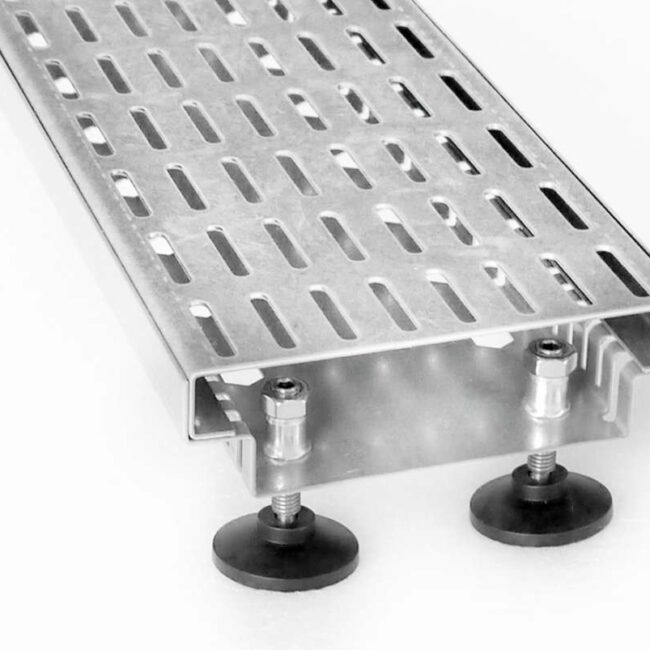 Auch komplett als Ausführung mit höhenverstellbarer Ablaufrinne. Schlitzroste bzw. Lochroste eignen sich besonders für Rinnen und Abläufe im Bereich von Balkon, Terrasse oder Fußwegübergängen.