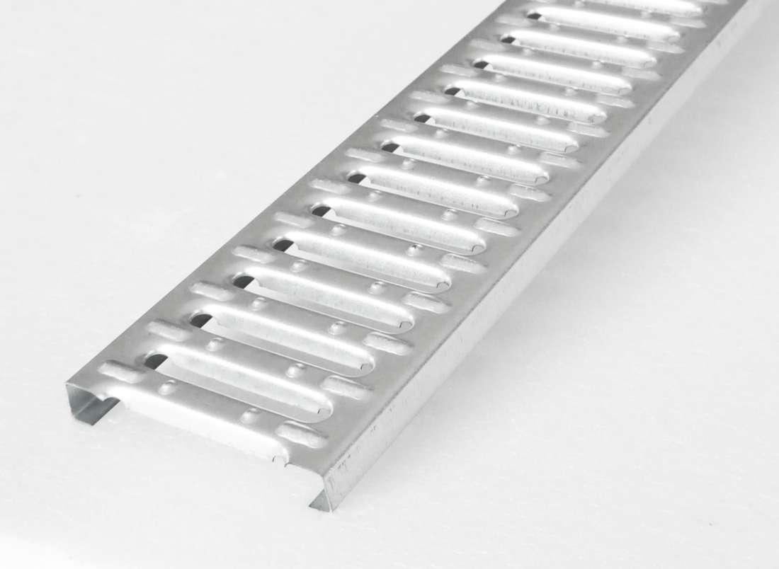 Auch komplett als Ausführung mit höhenverstellbarer Ablaufrinne. Schlitzroste bzw. Lochroste eignen sich besonders für Rinnen und Abläufe im Bereich von Balkon, Terrasse oder Fußwegübergängen.