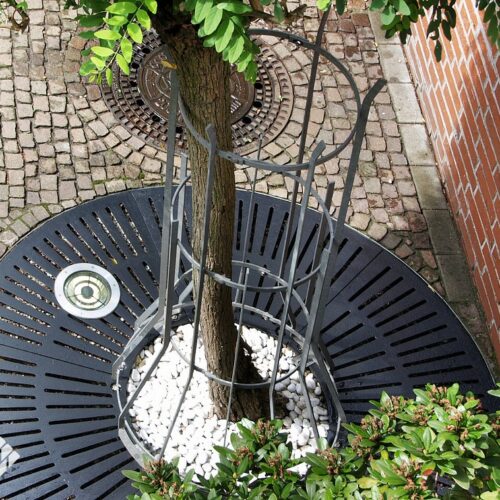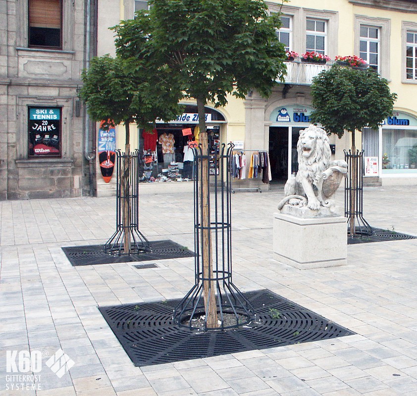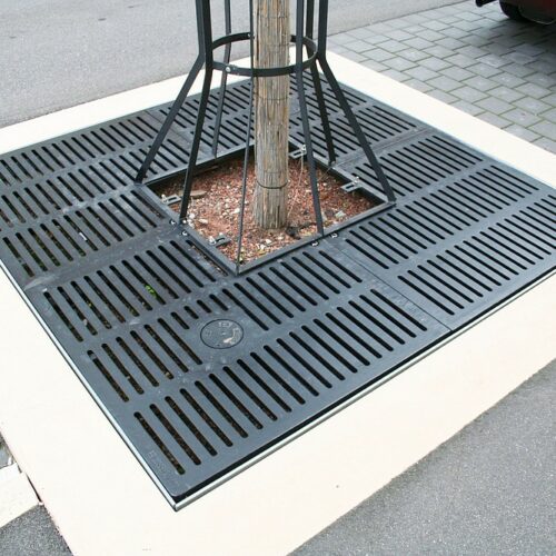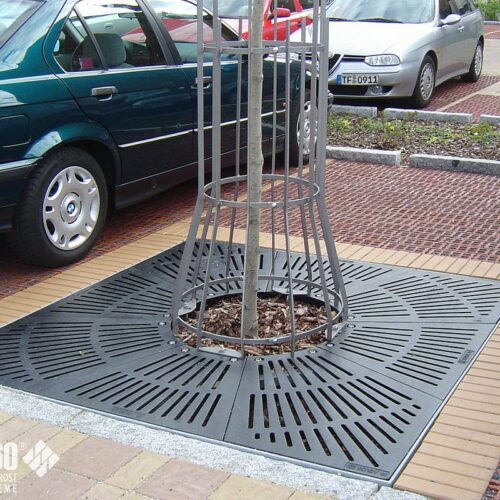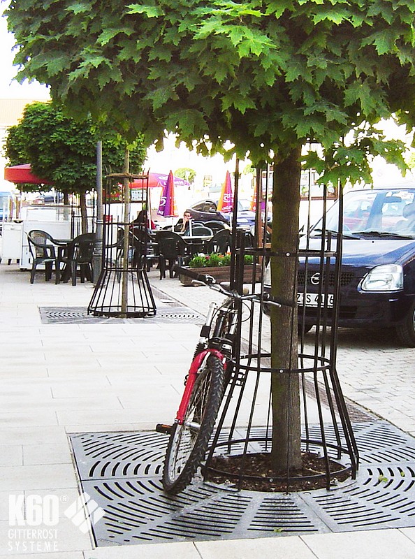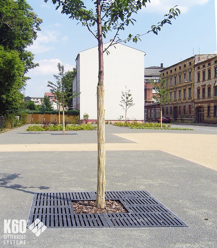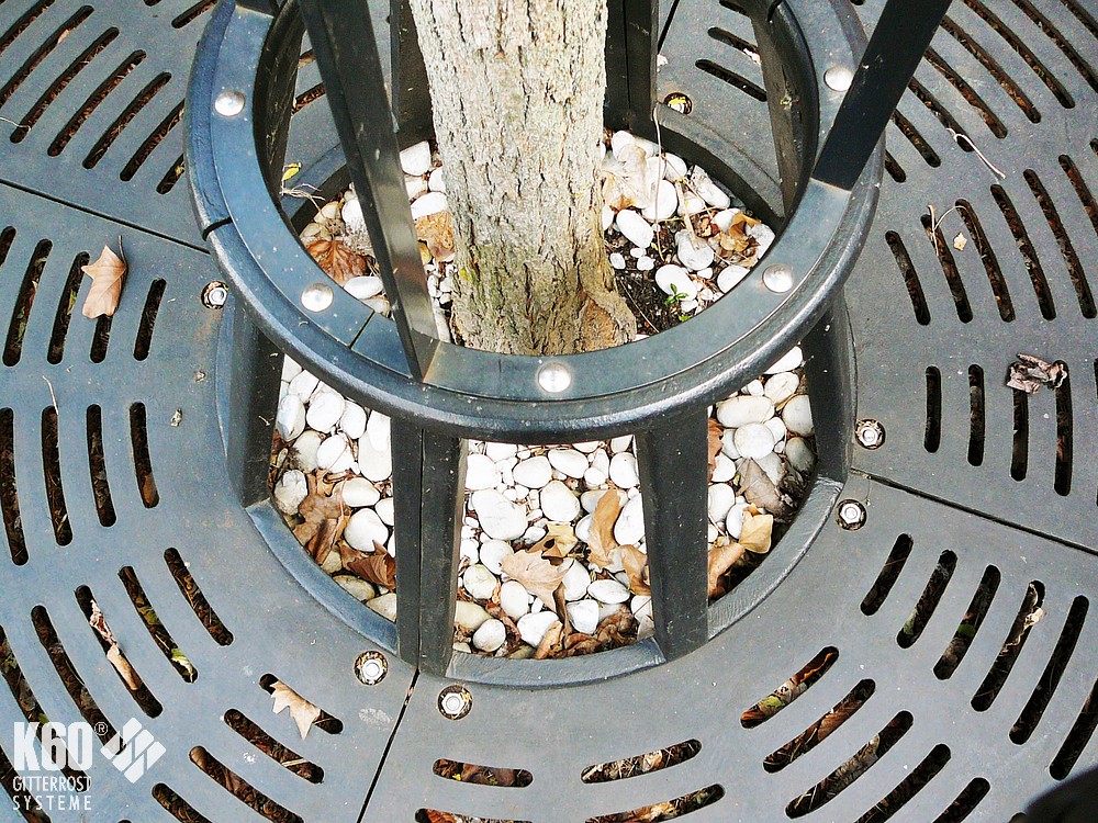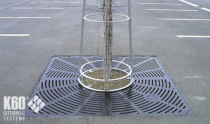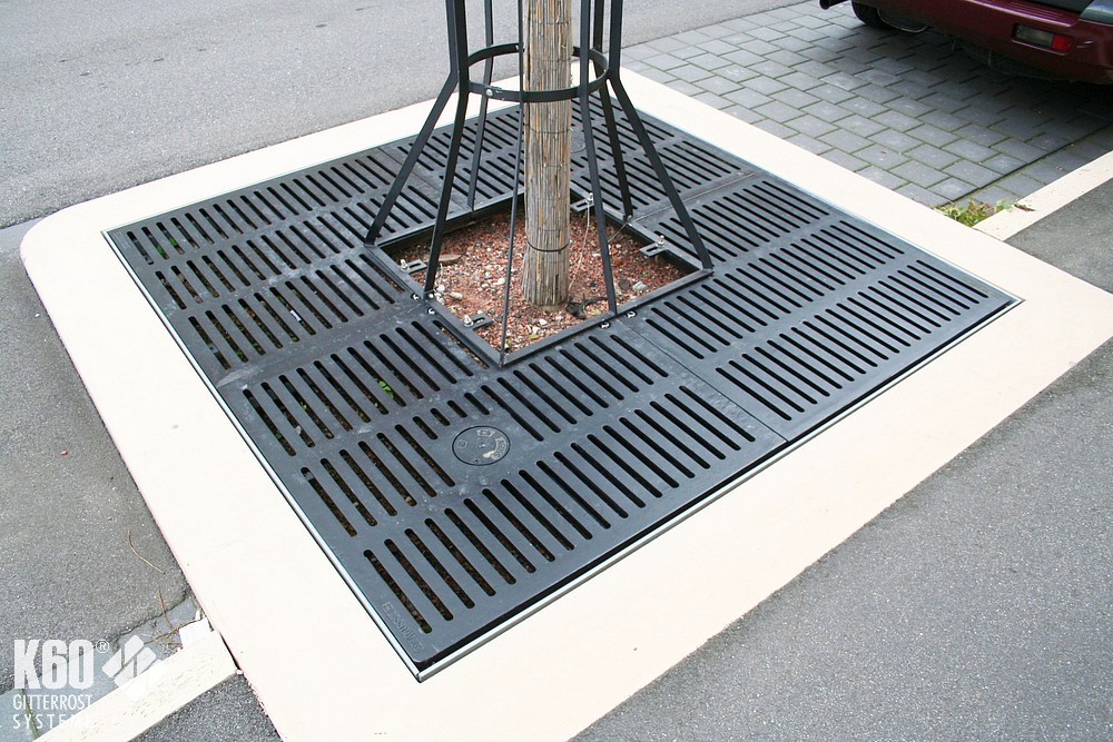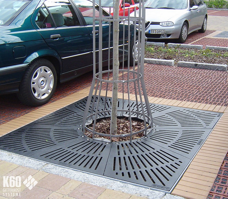 Baumroste mit Rahmen eckig & rund Baumroste mit Rahmen eckig & rund Baumroste mit eckigem Rahmen – Gusseisern Eckige Baumrostrahmen finden meist Verwendung in befahrenden Bereichen, z. B. Parkplätze oder als Einfriedung von Straßenbäumen. Rahmen aus Stahl feuerverzinkt und nach RAL 9005 pulverbeschichtet gußeiserne Baumroste nach RAL 9005 pulverbeschichtet andere Farben sind auf Anfrage möglich Eckige Baumroste Abmessungen Quadratische Mammutroste im Radial-Design Durchmesser außen mm Durchmesser innen mm H in mm Anzahl Segmente Gewicht 1250 600 41 4 145 KG 1500 600 41 4 195 KG 1500 700 41 4 185 KG 1800 700 41 8 285 KG 1800 700 41 4 320 KG 2000 700 46 8 385 KG 2000 700 46 4 420 KG Rahmen für Mammutroste Durchmesser außen mm Durchmesser innen mm H in mm Anzahl Segmente Gewicht 1276 625 80 2 36 KG 1526 715 80 2 43 KG 1526 715 80 2 43 KG 1826 825 80 2 51 KG 2026 825 100 2 66 KG Baumroste mit rundem Rahmen Die elegante Charakteristik der runden Rahmen kommt im innerstädtischen Bereich, in Fußgängerzonen und in Parkanlagen besonders zur Geltung. Rahmen aus Stahl feuerverzinkt und nach RAL 9005 pulverbeschichtet gußeiserne Baumroste nach RAL 9005 pulverbeschichtet andere Farben sind auf Anfrage möglich Runde Baumroste Abmessungen Quadratische Baumroste mit rundem Ausschnitt Außenmasse mm Innenmaße mm Rosttyp Anzahl Segmente 1250 x 1250 600 x 600 DLS Barfußrost 4 1500 x 1500 600 x 600 DLS Barfußrost 4 1800 x 1800 700 x 700 DLS Barfußrost 8 2000 x 2000 700 x 700 DLS Barfußrost 8 Rahmen für Baumroste mit rundem Ausschnitt Außenmasse mm Durchmesser innen mm H mm Anzahl Segmente Belastung 1276 x 1276 625 80 2 15 KN begehbar 1526 x 1526 715 80 2 15 KN begehbar 1826 x 1826 825 80 2 15 KN begehbar 2026 x 2026 825 100 2 15 KN begehbar Passend dazu: BaumschutzgitterFundamente BaumrosteBaumgitterrosteIm K60-Online-Shop: Baumroste im Online-Shop