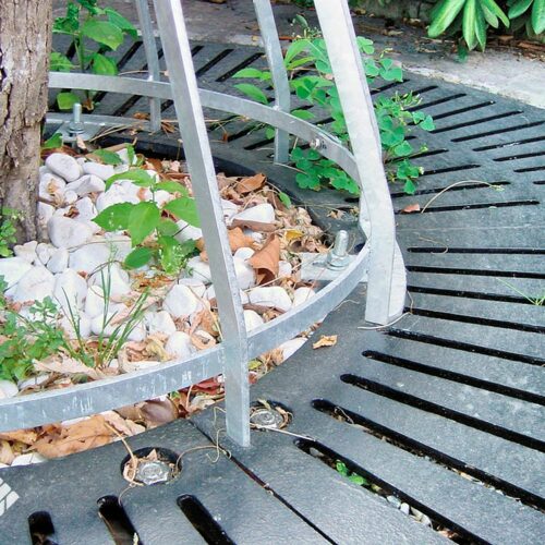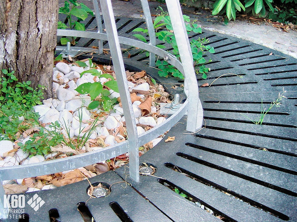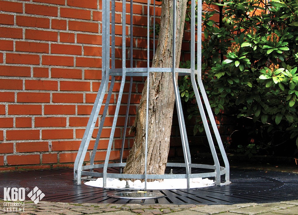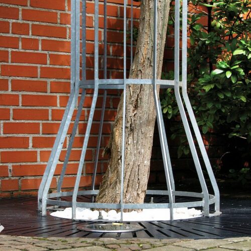 Attraktive und wertige Gestaltung im öffentlichen Bereich. Um den Baum zu schützen, vor beispielsweise anlehnenden Fährrädern und in befahrbaren Bereichen als Anfahrschutz, bieten wir unsere Baumschutzgitter an. Auch in Kombination mit Anfahrgitterschutz.