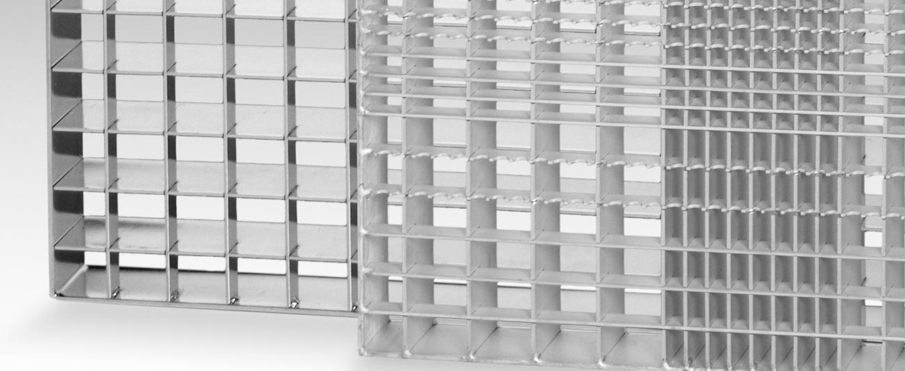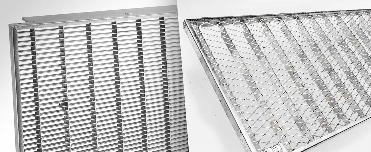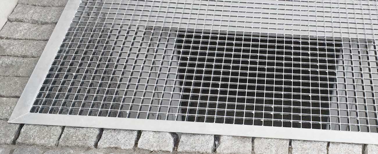 Für Licht-, Kellerschächte u. Eingänge. Gitterroste mit 3-seitigem Auflager.