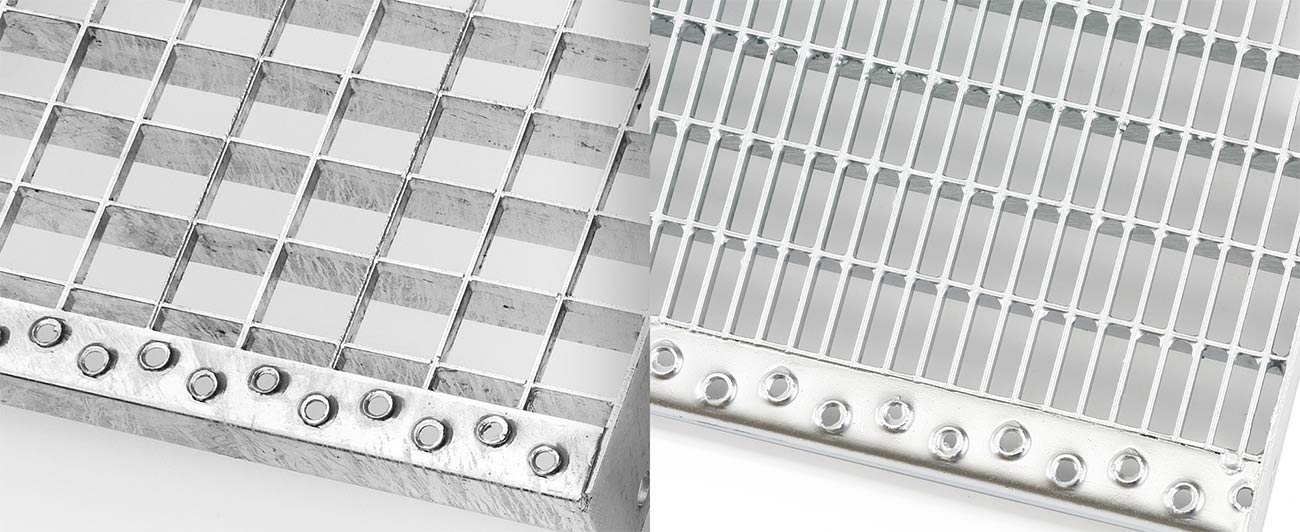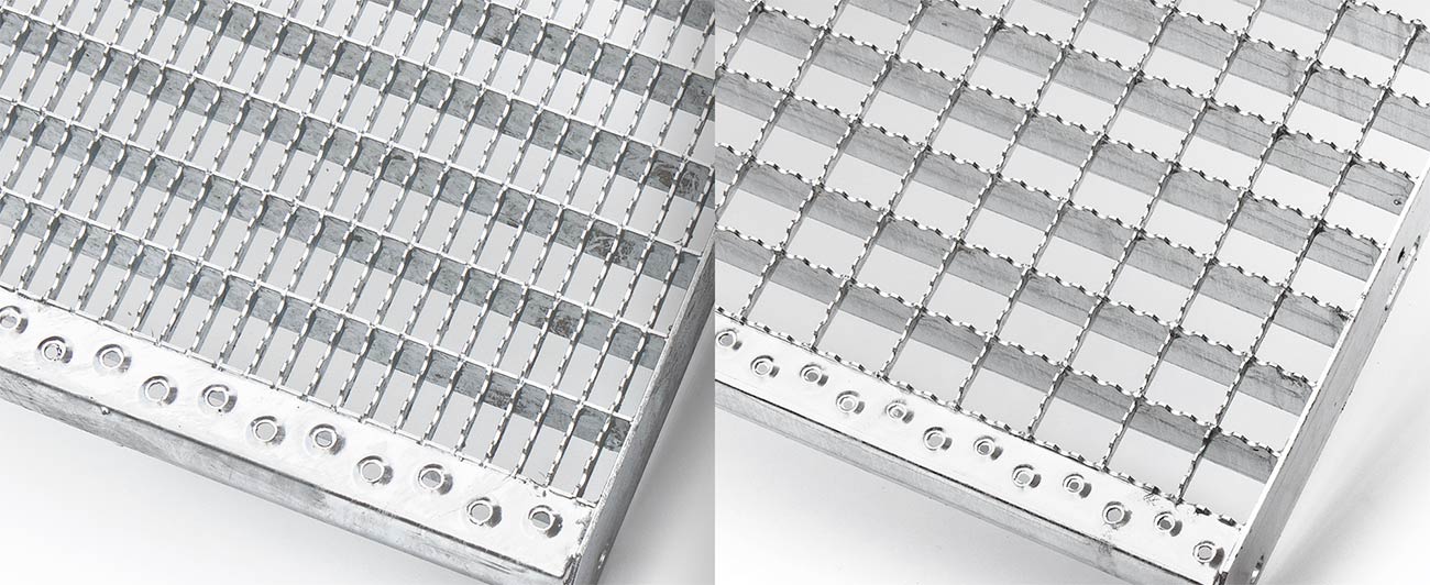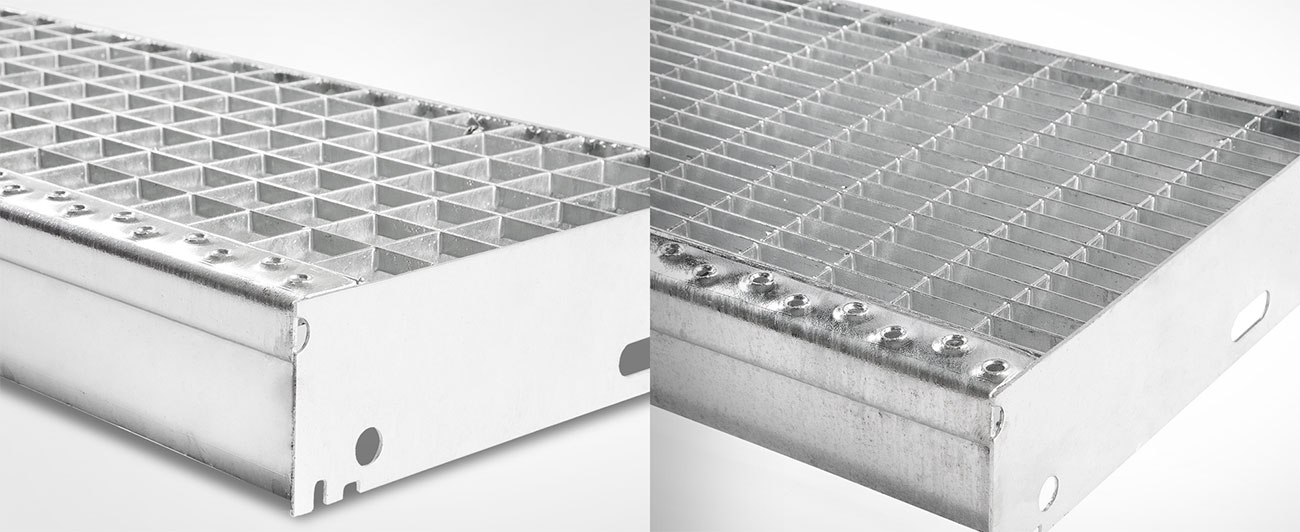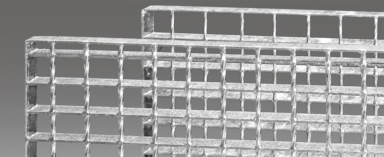 Querlaufende Masche und hohe Belastbarkeit der Gitterroststufe.