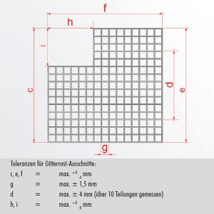 Toleranzen für Gitterrost-Ausschnitte: